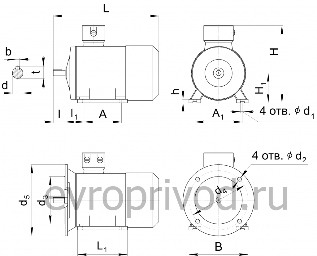 | L | H | A | A1 | b | d | d1 | d2 | d3 | d4 | d5 | h | H1 | l | l1 | t | ||