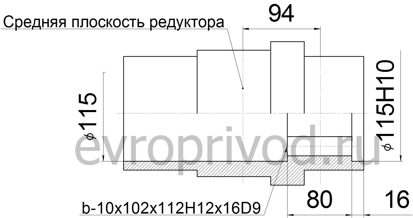 - полый выходной вал редуктора 1Ц2У-250