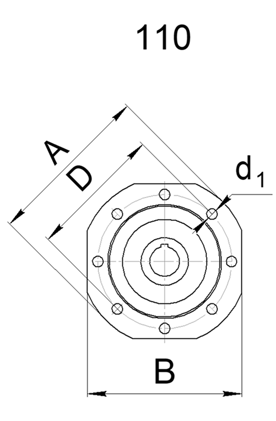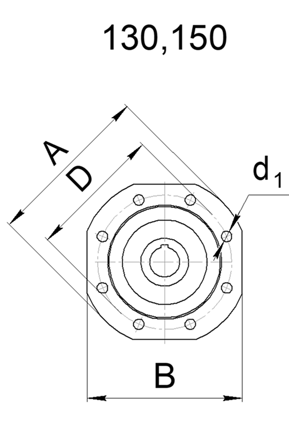 РАЗМЕРЫ ПРИСОЕДИНИТЕЛЬНОГО ФЛАНЦА НА ВЫХОДНОМ ВАЛУ РЕДУКТОРА